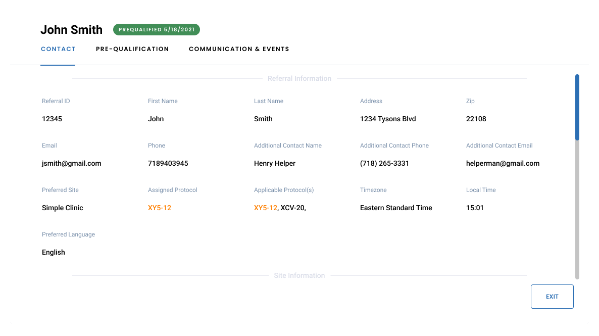 Based on user feedback, each results table was structured with Referral ID as the leading column header, streamlining the process of locating and sorting individual referrals. Additional field-level search inputs allowed users to progressively narrow their results using any known data point—such as participant name, site, or phone number—significantly reducing the time required to locate relevant records within the database.
